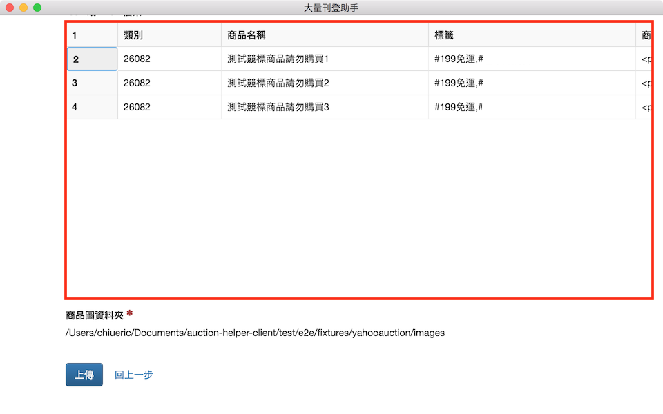 查看匯入的檔案是否為您欲上傳的商品,如果是,按「上傳」。