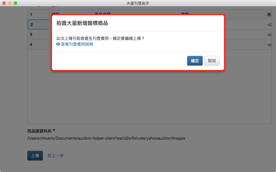 如果此次上傳會產生額外費用,會彈出警告訊息,點選「確定」繼續。