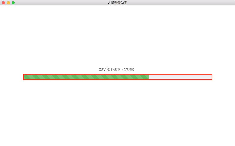 等待上傳作業完成。(注意:上傳進度全數完成前請勿關閉程式!)