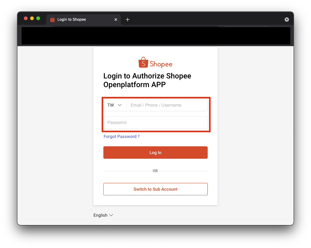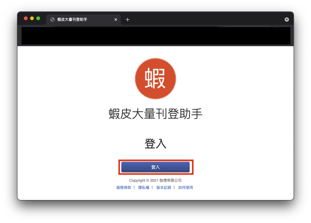 點擊授權登入後,會開啟一個新的瀏覽器視窗,點擊『登入』 ,進入蝦皮授權流程。