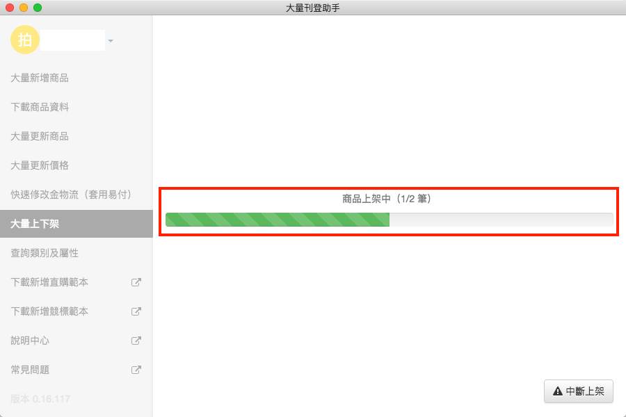 等待上架作業完成。(注意:上傳進度全數完成前請勿關閉程式!)