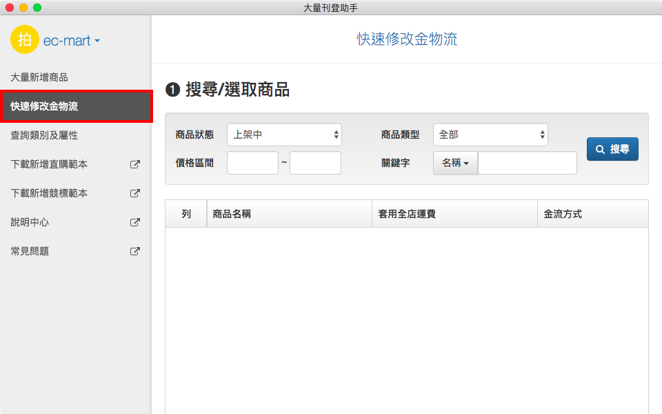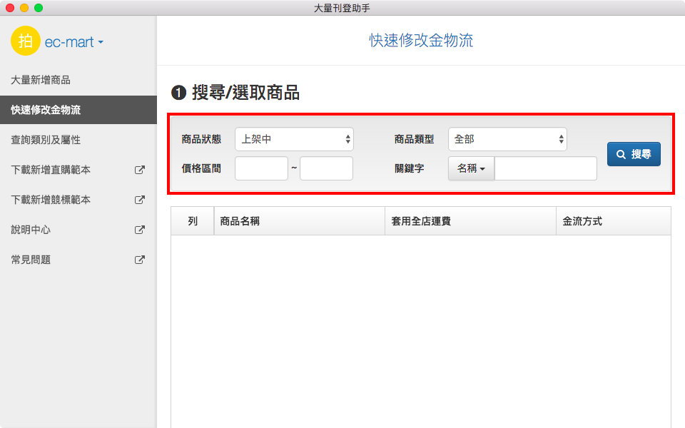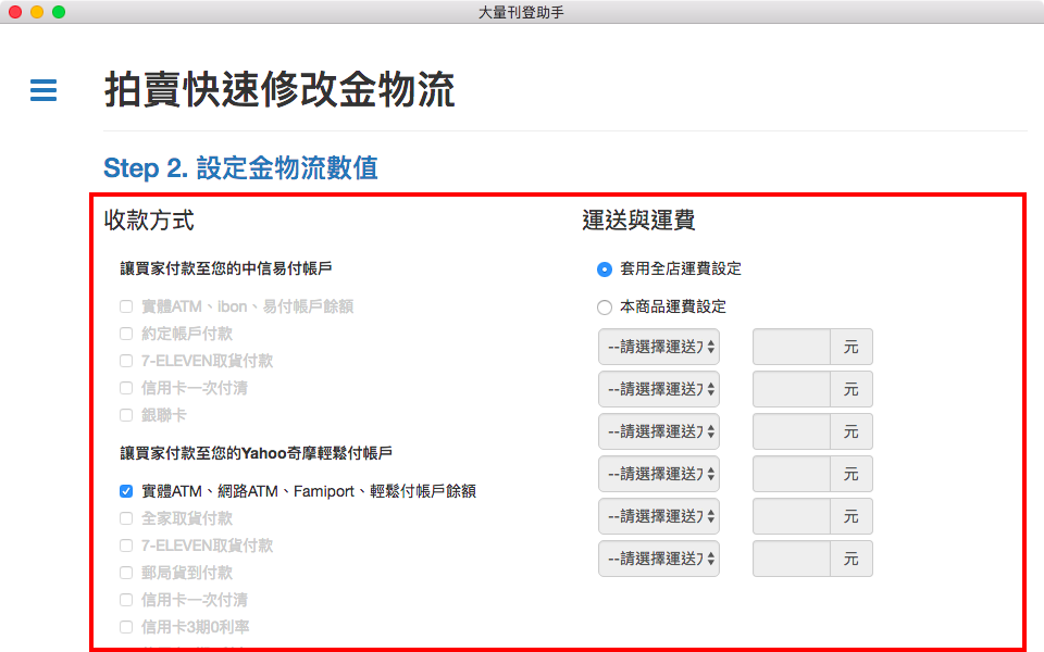 設定您欲套用的金物流方式,設定完成後,按「下一步」繼續。